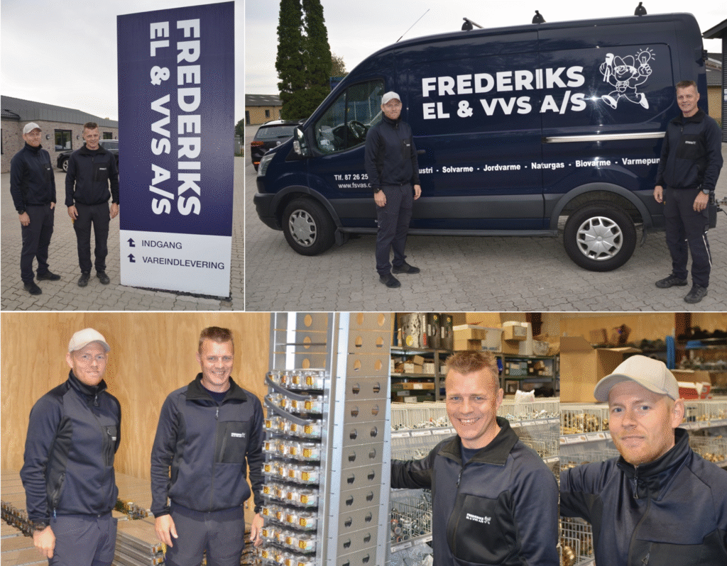 Når man ved aftentid kommer forbi Frederiks EL & VVS kan man se nogle af firmaets mere end 30 varebiler smukt linet op på Nyrupsvej 7 foran den bygning, der har været virksomhedens domicil siden 1. maj 2023, en virksomhed med en lang og stolt historie med flere ejere og knopskydning, som kan ske, når virksomheden ledes af iderige og foretagesomme folk, og her danner Johnny og Michael Jensen et godt og stærkt lederteam.